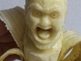 Con un palillo y una cuchara, convierte a las frutas en rostros de personajes famosos, tales como Elvis Presley o Davey Jones de Los Piratas del Caribe. Al finalizar la obra, toma una fotografía y luego se como a su propia creación.