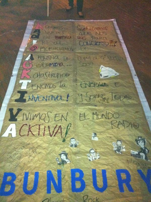 Pancartas Enrique Bunbury de los oyentes de Radioacktiva
