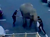 El paquidermo huyó y campó en el estacionamiento de un centro comercial