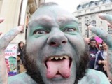 Sprague se califica como "artista". De hecho, este hombre de 40 años se dedica a la comedia y a realizar espectáculos con espadas y pinchos, por supuesto, mostrando su cuerpo, tatuado en un 70 por ciento de color verde, aunque el resto se lo teñirá en breve.