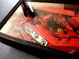 Al diseñador francés Charly Molinelli se le ocurrió algo bien distinto para sus muebles. Agarró un Ferrari rojo, lo trituró, le dio forma y lo puso en el interior de una mesa y ahora decora su sala del apartamento.