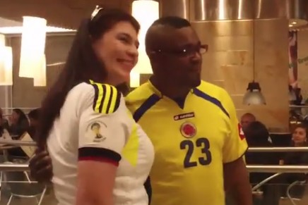 Leider Preciado con la hinchada  durante el partido Colombia VS Chile