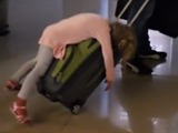 Tras un vuelo de seis horas, esta niña estaba tan cansada que se durmió en la maleta de su padre