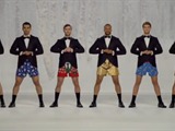 Al principio del video se muestra a 6 hombres aparentemente bien vestidos, cubiertos por una mesa enorme desde la cintura para abajo, cuando la mesa es jalada, se ve a los modelos en coloridas prendas interiores.