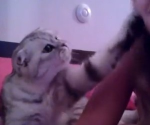 El pequeño gato no deja tranquila a su dueña hasta que esta le da un beso y se deja besar