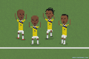 Algunas jugadas relevantes y hechos curiosos de la selección Colombia en la competición, quedaron retratados en su obra, yendo desde la celebración de Armero en su primer gol hasta los goles de James contra Japón y Uruguay.