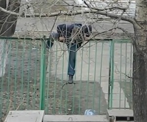 Borracho protagoniza un espectáculo al no poder cruzar reja (video)