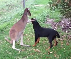 Un tierno canguro y un perro rottweiler vienen demostrando al mundo una lección de vida, ya que disfrutan de su adorable amistad sin tener ningún problema.