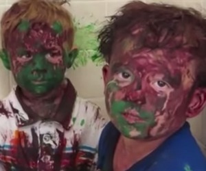 Dos pequeñitos con la cara totalmente manchada han dejado su casa hecha un desastre tras “robar” pintura.