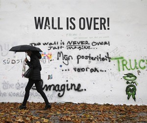 Un grupo de estudiantes de arte asumió la responsabilidad el lunes al decir que pintó el muro de blanco y dejó el mensaje "Wall is over!" ("¡Se acabó el muro!"), en un aparente juego de palabras del éxito de Lennon "Happy Xmas (War is Over)".