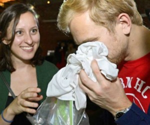 Un extraño evento se realiza en un bar de Londres, donde cientos de hombres y mujeres se juntan para sentir el aroma de camisetas.