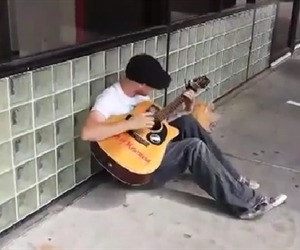 Mientras un joven era grabado por las cámaras de algunos transeúntes cuando tocaba su guitarra e interpretaba una canción, un segundo hombre se acercó, parecía que se quería deleitar con la voz del primer hombre