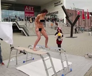 "The PlopEggPainting Performance" es el nombre del video. Y muestra a la artista suiza Milo Moire expulsando cápsulas de pintura desde su vagina hacia un lienzo blanco que se encuentra debajo de ella.