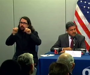 Pero, ya hay una idea muy simple para hacer más interesantes estos momentos. Los organizadores de estas conferencias sólo deben poner a un intérprete con mucha actitud a traducir en lenguaje de señas lo que está diciendo la persona que tiene el micrófono