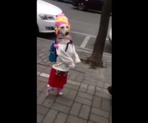 Este es el can que camina como una niña (video)