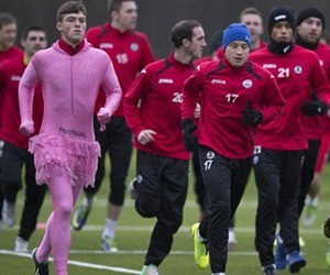 Patrick Thistle, defensor del club escocés recibió como castigo tener que entrenar con un ridículo vestido rosa por no haberse esforzado lo suficiente en las prácticas del equipo, según publicó el diario Daily Mail.