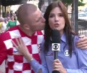En medio de la celebración de un triunfo, un hincha de Croacia no se pudo contener y se atrevió a besar a la reportera mientras esta cumplía su labor en el Mundial de Brasil 2014.