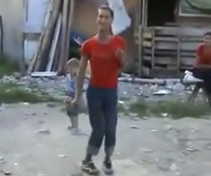 En las imágenes se puede ver a un simpático personaje bailando el tema "Eres la más bella" en medio de un barrio.
