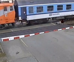 Hombre estuvo a punto de ser atropellado por tren (video)