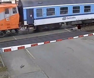 En el video se ve como un peatón iba caminando sin mucha preocupación y repentinamente aceleró el paso cuando repentinamente pasó el tren y casi atropella al hombre.