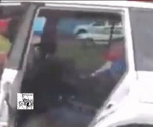 Hombre lleva a bebé en el carro, sin puertas (video)