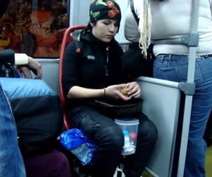Mire el video donde se puede ver a una pasajera sentada, picando los alimentos.