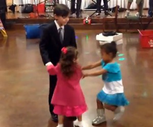 En este video se ve cómo un niño está bailando solo y muy feliz cuando de repente se acerca una pequeña a bailar con él. Hasta ese momento, la otra niña ni se percataba de la situación.