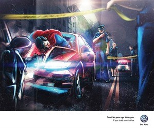 El slogan de la campaña es: “Don’t let your ego drive you. If you drink don’t drive”, las imágenes hechas por Fabio Obando, nos recuerdan que si se ha tomado aunque sea un solo trago, por mucha confianza que tenga de las capacidades para manejar un carro, el resultado puede ser de lamentar.