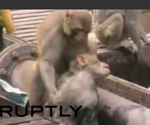 Después del impacto cayó en las vías y perdió el conocimiento mientras que el otro mico llegó para recatarlo y reanimarlo con golpes y cachetadones hasta que finalmente lo lanzó al agua para que reaccionara.