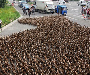 El hecho quedó registrado gracias a un conductor, que pudo captar las imágenes de los miles de patos desplazándose.