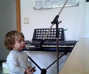 y es el hijo de Flavio Rigatozzo que quiere ser igual que su padre y trata de cantar blues a su manera, con su divertido lenguaje aún de bebé.