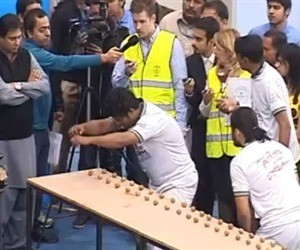 En este caso, Mohammad Rashid se presentó en el reconocido evento y logró batir el récord mundial, ya que en tan solo 1 minuto quebró 155 nueces con la cabeza,superando la marca anterior de 44 nueces.