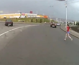 Es así que en Rusia, una mujer se encontraba esperando que un auto negro pase para ella cruzar. La mujer camina hacia el otro lado de la pista sin notar que el bus que va en dirección a ella.
