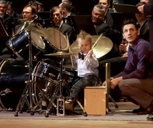 Se trata de Lionia Shilovski quien mostró su virtuosismo en la percusión junto a a la Orquesta Sinfónica de Novosibirsk frente a cientos de personas que se deshicieron en aplausos para el pequeño músico que incluso ofreció un solo de batería.