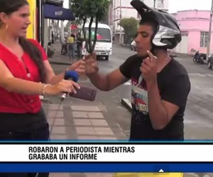 El delincuente, con cuchillo oxidado en mano, le hurtó el celular a una periodista que grababa un informe para un noticiero en Bucaramanga.