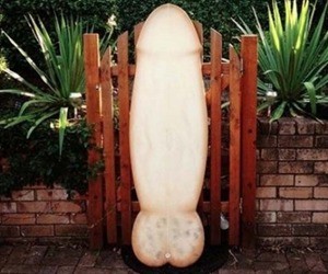 Se trata de Paul Fisher, un surfista profesional australiano quien moldeó con sus propias manos la tabla de surf con la que montaría las olas más peligrosas. Sin embargo, lo más extraño es que su "herramienta de trabajo" tiene la forma de un enorme y grueso miembro viril.