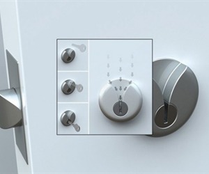 La chapa se ve como cualquier otra, pero tiene un canal especialmente diseñado para que la llave se deslice hasta la ojo de la cerradura.