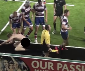 Un hombre se metió dentro del campo de juego sin ropa y hasta tackleó a un jugador.