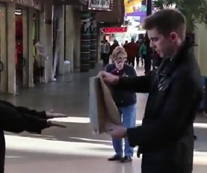 Siendo así, un joven mago se acerca a un mendigo, le dice que coloque el excedente de alguna envoltura o algún alimento a medio comer e inesperadamente multiplica el producto ante los ojos del habitante de la calle.