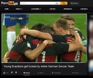 Según publica el diario británico ‘The Independent’, el sitio para adultos -donde los usuarios tienen la posibilidad de compartir sus videos eróticos- está lleno de secuencias de la humillante goleada a Brasil con títulos bastante sugerentes.