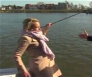 La periodista apenas comenzaba su entrevista con el político cuando, al hacerle la primera pregunta, se apoyó en una de las cuerdas de la embarcación en la que ambos se encontraban y perdió el equilibrio.