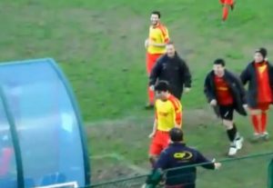 El delantero que anotó el gol salió a correr y en vez de celebrar con sus compañeros se fue a romper el banco de suplentes, lo peor de todo es que el árbitro lo expulsó por atentar contra su integridad física.