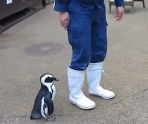 Algunos animales son muy tiernos y el ejemplo de eso es este pingüino que protagonizó una curiosa ‘persecución’ a su cuidador en interior del zoológico Matsue Vogel Parkm, en Japón.