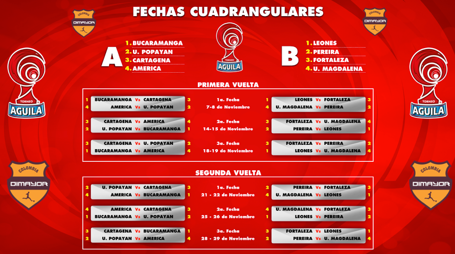 La Dimayor hizo el sorteo para los cuadrangulares del Torneo Águila 2015 que empezarán a jugarse el 7 y 8 de noviembre: