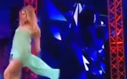 La profesional bailarina, Ekaterina Kondrashina, no calculó la distancia de su cara al piso y se dio tremendo golpe en la nariz. Sin embargo, la chica participaba en uno de tantos concursos de talento que hay en TV y el show debía seguir a pesar de dolor.