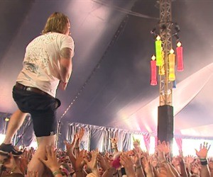 El cantante de la banda holandesa, John Coffey, quedó como un grande del rock and roll al atrapar un vaso de cerveza que le lanzan.