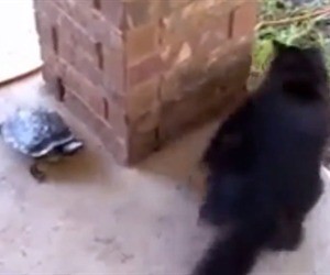 En el video que verá a continuación, un gatico y una tortuga juegan a las escondidas y sí que se divierten.