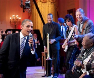 "Va a haber una sesión de gran blues esta noche en el cielo", publicó el presidente de los Estados Unidos. El mensaje iba acompañado de una foto en la que se ve a Obama cantando junto al gran músico norteamericano.