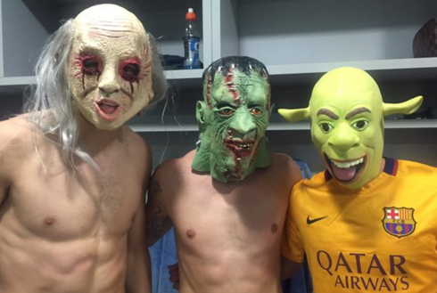 El triunfo llegó acompañado de máscaras y actitud de Halloween. El Barcelona ganó 2-0 al Getafe y, para unirse a la celebración mundial del día de las brujas, los jugadores blaugranas decidieron disfrazarse: