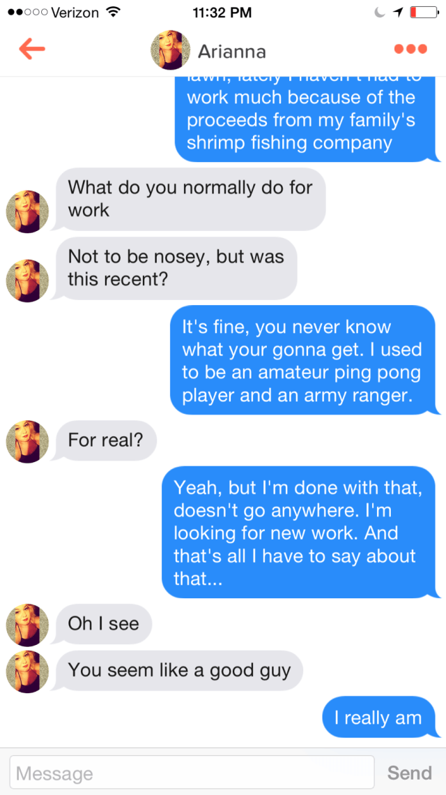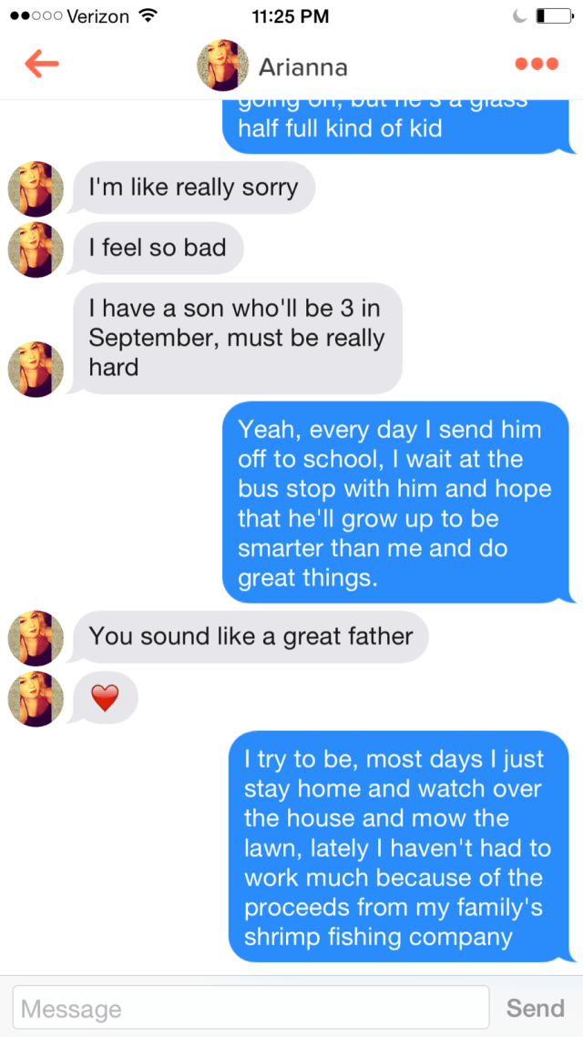 Tras hacer un match con una chica en Tinder, un hombre creyó que su vida no era para interesante, de tal forma quiso inventar una vida como la de Forrest Gump para atraer a diferentes mujeres.
